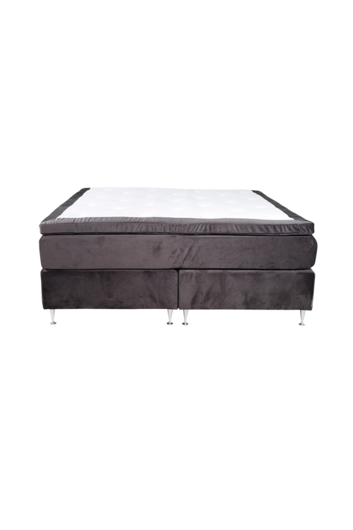 Fjärås, en Modern Lyxig Kontinentalsäng i ett sammetstyg som kommer med ett dubbelt pocketresårsystem. En säng som kommer ge ett maffigt och lyxigt intryck till sovrummet med sin höga höjd och många madrasser, uppbyggd i 3 lager för att ge en god sömn. Sängbottnarna är uppbyggda av en massiv träram i gran med ett fjädersystem i pocket som hjälper till att ge dig rätt avlastning och stöd för hela kroppen. Resårmadrassen är uppbyggd av pocketfjädrar med 7 komfortzoner som är anpassade för att ge maximal avlastning när du sover vare sig du sover på mage, rygg eller sidan. Den pikerade bäddmadrassen är uppbyggd av mickrofibervadd och kallskum som kommer ge dig extra följsamhet. Sammantaget är sängen uppbyggd för att ge en extra skönt sovkomfort som möjligt samt ge ett enhetligt intryck i sin helklädda design. Hela sängen vilar på champangeben i silvrig aluminium. Material resårmadrass: ram i granträ, plywood och pocketresår, Höjd resårmadrass: 21cm, Material bäddmadrass: syntetiskt fiber och kallskum, Höjd bäddmadrass: 9cm, Totalhöjd säng: 69cm. Lättare montering krävs.
