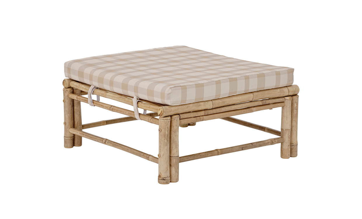 Korfu är en trevlig pall som passar fint till modulsoffan Korfu där möbeln kan agera som fotpall eller divan. Möbeln är tillverkad av bambu och har en mjuk kudde av polyester som tillsammans ger en mysig och hemtrevlig känsla. Sitsen är bred och djup vilket ger hög komfort. Korfu passar fint med de andra möblerna i samma serie.Design & egenskaperTrevlig pall med mysig känsla.Både för inomhus- och utomhusbruk.Sitthöjd: 37 cm.Maxvikt: 160 kg.Material & skötselTillverkad av bambu.Då möbeln är tillverkad av naturmaterial kan färg och finish variera något.Eftersom bambu är ett naturmaterial kan färgen förändras med tiden och få en grå ton. Undvik att lämna möbeln i regn eller kyla, detta förkortar materialets livslängd.Rengör med en fuktig trasa och behandla gärna med möbelolja.Kuddar tillverkade av polyester.Klädseln kan tvättas i 30°C.Leverans & förpackningLevereras omonterad.Antal förpackningar: 1 st