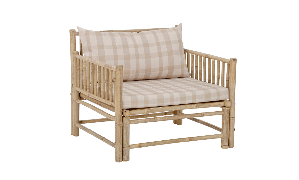 Korfu är en trevlig loungestol som passar lika bra inomhus som utomhus. Stolen är tillverkad av bambu och har mjuka kuddar av polyester som tillsammans ger en mysig och hemtrevlig känsla. Stolens sits är bred och djup vilket gör hög komfort. Korfu passar fint med de andra möblerna i samma serie.Design & egenskaperTrevlig loungestol med mysig känsla.Både för inomhus- och utomhusbruk.Sitthöjd: 37 cm.Maxvikt: 160 kg.Material & skötselTillverkad av bambu.Då möbeln är tillverkad av naturmaterial kan färg och finish variera något.Eftersom bambu är ett naturmaterial kan färgen förändras med tiden och få en grå ton. Undvik att lämna möbeln i regn eller kyla, detta förkortar materialets livslängd.Rengör med en fuktig trasa och behandla gärna med möbelolja.Kuddar tillverkade av polyester.Klädseln kan tvättas i 30°C.Leverans & förpackningLevereras omonterad.Antal förpackningar: 1 st