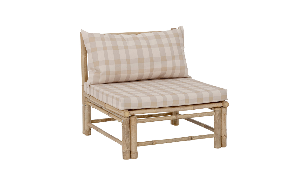 Korfu är en trevlig möbel som passar lika bra inomhus som utomhus. Mittdelen är del av en modulsoffa som kan byggas och formas i önskad form, och kan dessutom flyttas om efter behov. Möbeln är tillverkad av bambu och har mjuka kuddar av polyester som tillsammans ger en mysig och hemtrevlig känsla. Sitsen är bred och djup vilket ger hög komfort. Korfu passar fint med de andra möblerna i samma serie.Design & egenskaperTrevlig mittdel till modulsoffa med mysig känsla.Både för inomhus- och utomhusbruk.Sitthöjd: 37 cm.Maxvikt: 160 kg.Material & skötselTillverkad av bambu.Då möbeln är tillverkad av naturmaterial kan färg och finish variera något.Eftersom bambu är ett naturmaterial kan färgen förändras med tiden och få en grå ton. Undvik att lämna möbeln i regn eller kyla, detta förkortar materialets livslängd.Rengör med en fuktig trasa och behandla gärna med möbelolja.Kuddar tillverkade av polyester.Klädseln kan tvättas i 30°C.Leverans & förpackningLevereras omonterad.Antal förpackningar: 1 st
