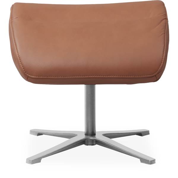 Fotpall, kallskum. – Cognac läder och sockel i borstat stål