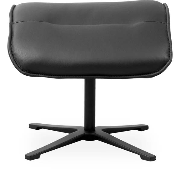 Fotpall, kallskum. – Svart läder och sockel i svart metall