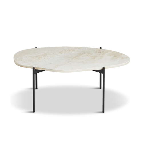 Material: travertin i beige melange nyans. Benstativ i svart järn.