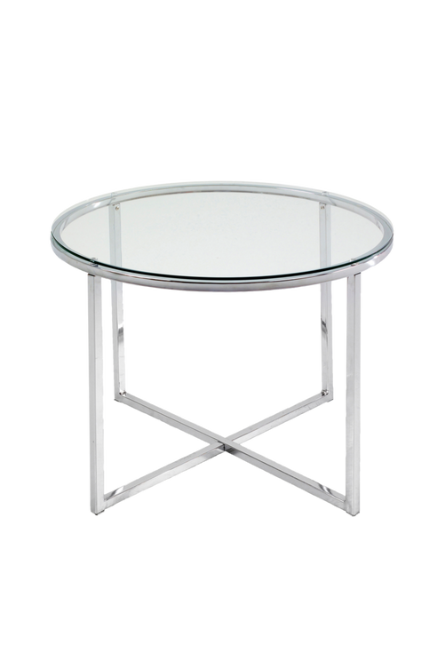 Lampbord, kromad metall och glasskiva 5 mm. Dia 55 cm, höjd 45 cm. Montera själv.