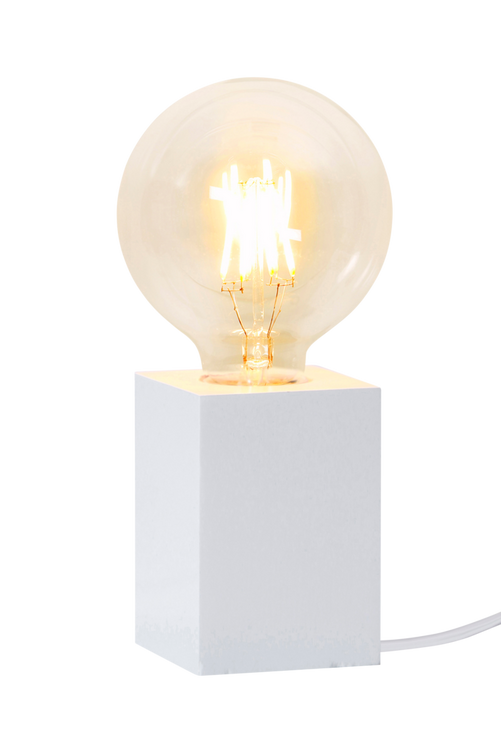 Mått: Bredd 7, djup 7, höjd 10 cm. Lys lampfot i trä. Svart sladd 1,8 m. 230V. E27 sockel. Ljuskälla ingår ej.