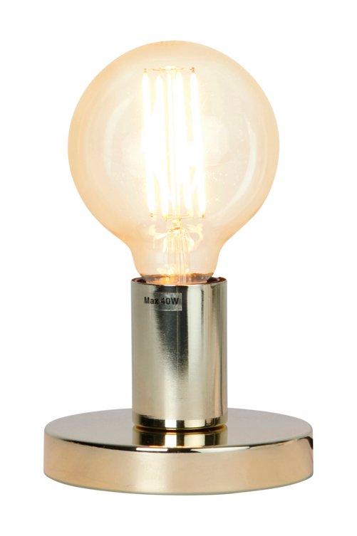 Mått: Bredd 12, djup 12, höjd 8,5 cm. Glans lampfot i metall. Svart sladd, sladdlängd 1,8 m. 230 V. E27 sockel. Ljuskälla ingår ej.