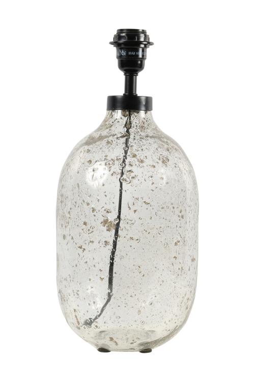 Groove lampfot är handgjord i ofärgat glas med bubblor och sandeffekter. Vi har inspirerats av gamla flaskor för att få en ruff känsla och varje lampa blir unik. Svarta metalldetaljer och 2 meters svart sladd. Höjd 40 cm, Ø 16 cm. Sockel E27. Max 40 W. Ljuskälla ingår ej.