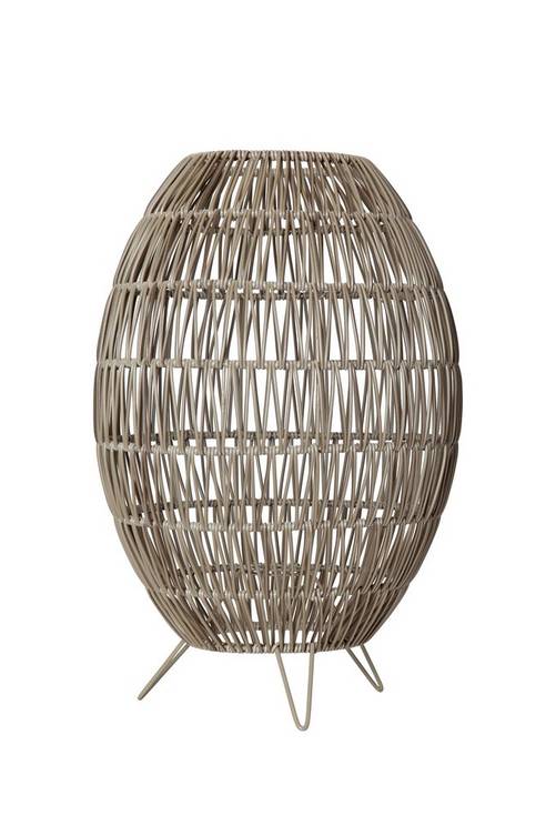 Golvlampskärm i fuskrotting för utomhusbruk. Passar lämpligast till upphäng med E27 sockel och ljuskällor som är mindre än 14 cm diameter. Material: Plast. Storlek: Höjd 46 cm, ø 30 cm. Sockel/lampa: 1 st E27, max 40 watt glödlampa. Ljuskälla medföljer ej. Tips/råd: Kombinera med TRÅDEN för en stilren utomhusbelysning.