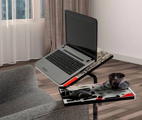 Material: 100% Melaminbelagd spånskiva Metallram (Tjocklek: 2,5 cm) Justerbar Höjd Mått: 67 x 87 x 45,5 cm