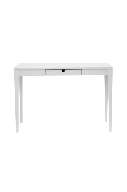 Laptopskrivbord vitlack. Längd 110 cm. Bredd 45 cm. Höjd 75 cm. Vikt 17 kg.