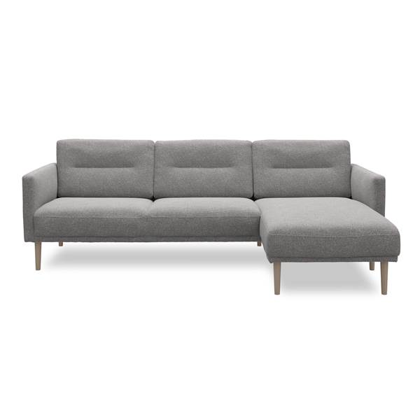 3 sits högervänd Soffa med schäslong, polyeterskum, polyeterskum, siddehøjde 42 cm. – Hampton 371 Grey textil och ben i vitoljad ek
