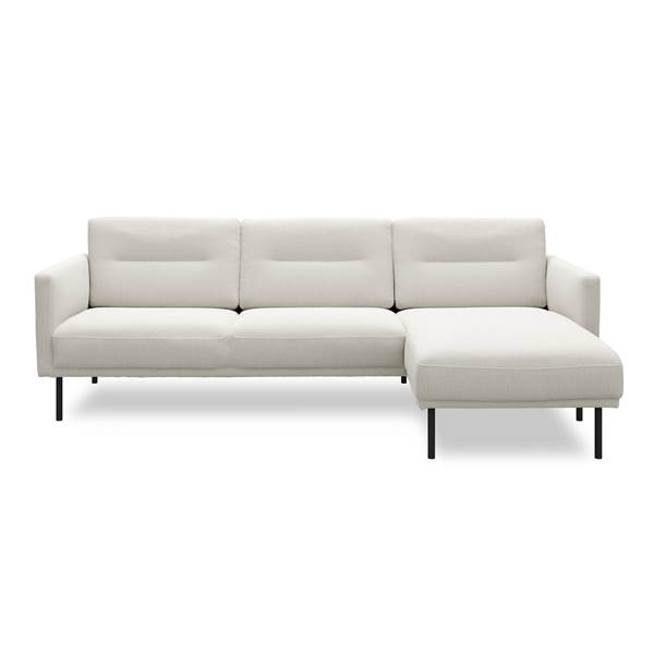 3 sits högervänd Soffa med schäslong, polyeterskum, polyeterskum, siddehøjde 42 cm. – Hampton 374 Beige tyg och ben i svartlackerad metall