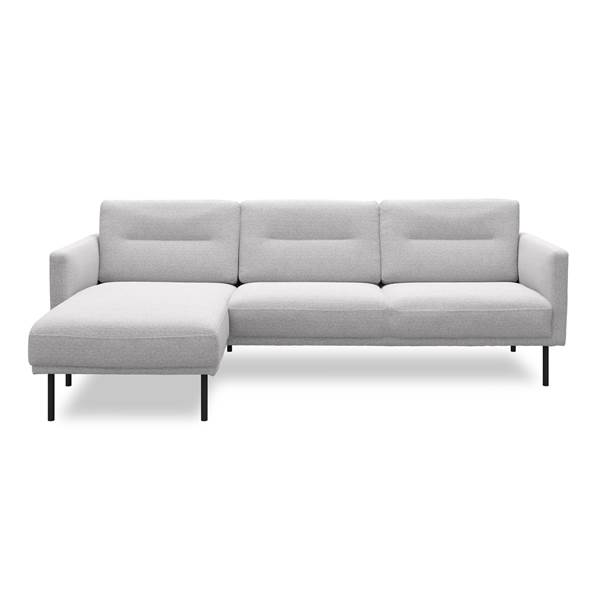3 sits vänstervänd Soffa med schäslong, polyeterskum, polyeterskum, siddehøjde 42 cm. – Hampton 372 Light grey textil och ben i svartlackerad metall