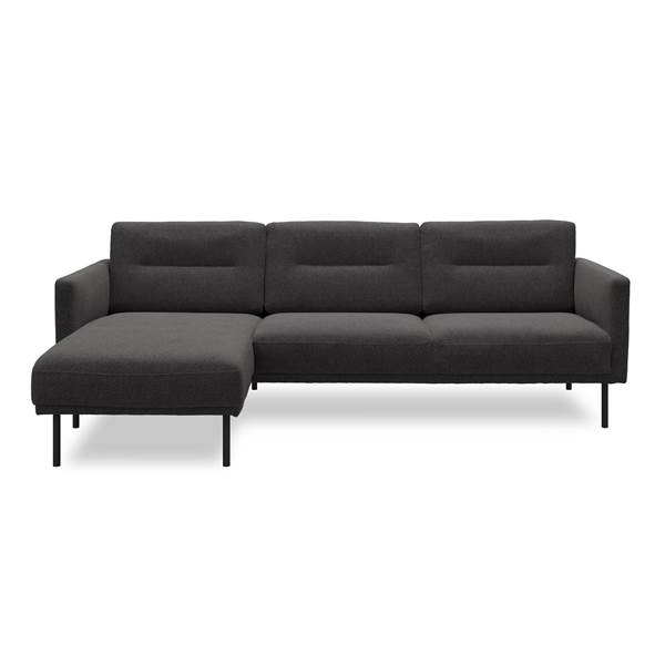 3 sits vänstervänd Soffa med schäslong, polyeterskum, polyeterskum, siddehøjde 42 cm. – Hampton 370 Antracite textil och ben i svartlackerad metall