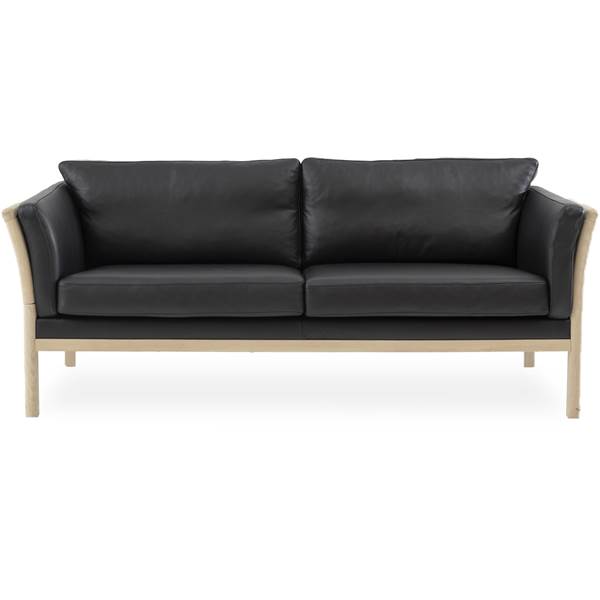 3 sits Soffa, Läder, S: kallskum med duntopp, R: polyeterskum med duntopp. – Martel 920 Black läder, stomme i såpbehandlad bok och utan fällfunktion