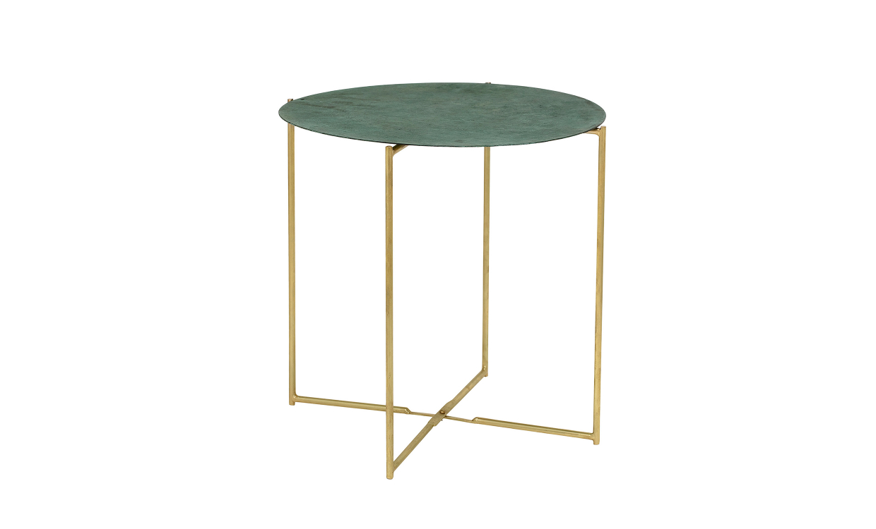 Leaf är ett underbart litet sidobord som för in en elegans till rummet. Den runda bordsskivan har en grön, melerad yta som kontrasterar fint mot de guldiga, raka benen. Bordet passar fint intill soffan, eller varför inte som sängbord?Design & egenskaperElegant sidobord med melerad bordsskiva.Tillverkat i järn.Torkas av med en fuktig trasa.Maxvikt: 10 kg.Leverans & förpackningLevereras omonterad.Antal förpackningar: 1 st