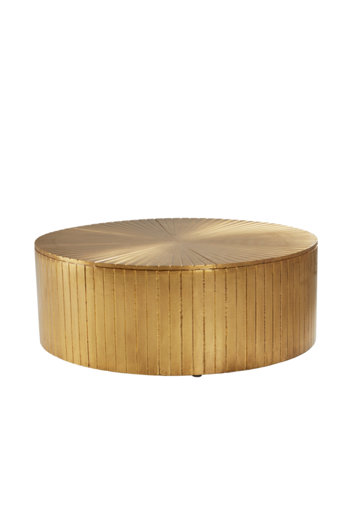 Runt soffbord i en rustik design. Bordsskivan har en lätt räfflad yta som ger en industriell känsla till ditt hem. Material: Mangoträ eller mässing. Storlek: Höjd 32 cm, bordsskiva ø 90 cm. Skötselråd: Damma bordet med en mjuk torr duk. Mässing har en egenskap att patineras när metallen reagerar med luft, vatten, syror etc. För att behålla den blanka ytan rengör med poleringsmedel för mässing. Undvik att placera möbeln under direkt solljus eller nära en eldstad, eftersom limmet kan lossna från ytan och orsaka bubblor på metallen. Formgivare: Jotex Design Studio. Tips/råd: Samla flera ljusstakar i olika höjd på bordets mitt. Vackert både när ljusen brinner i mörkret och på dagen när de inte är tända.