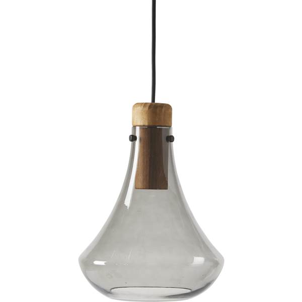 pendellampa (liten), max 40W, e27-sockel och 3 m sladd. – trätopp och svart textilsladd