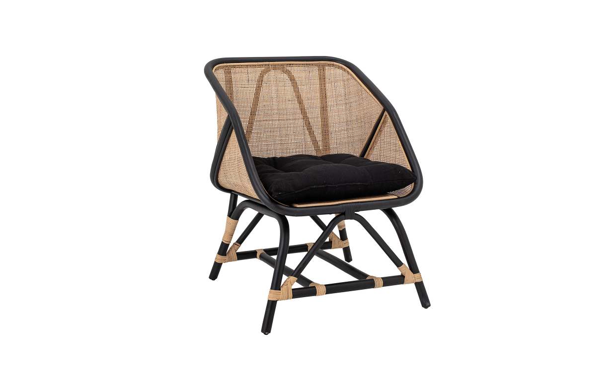 Loue är en attraktiv fåtölj som ger rotting ett nytt, spännande utseende med kombinationen av svart och natur. Fåtöljen har mjuka former och en generös sits där du kan koppla av under eftermiddagarna. För att öka komforten finns en stor kudde i polyester som både kan användas som sittkudde eller ryggstöd.Design & egenskaperAttraktiv fåtölj med mjuka former och härlig kombination av svart och natur.Tillverkad i rotting.Torkas av med en fuktig trasa.Sitthöjd: 37 cm.Maxvikt: 150 kg.Leverans & förpackningLevereras monterad.Antal förpackningar: 1 st