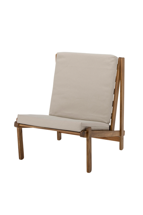 Gani loungestol från Bloomingville, i enkel, nordisk design, är tillverkad av akaciaträ. Med lösa dynor i canvas med linnelook är den både vacker och praktisk, och ger skön komfort.