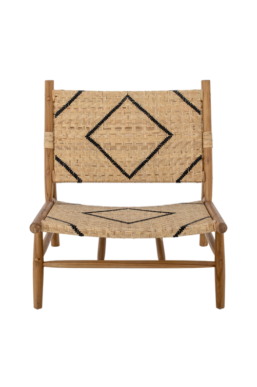 Lennox loungestol från Creative Collection är tillverkad av tålig teak och rotting. Den har ett snyggt, grafiskt mönster i svart och natur. Stolen är perfekt framför soffan eller i din favoritmyshörna med en liten kudde.