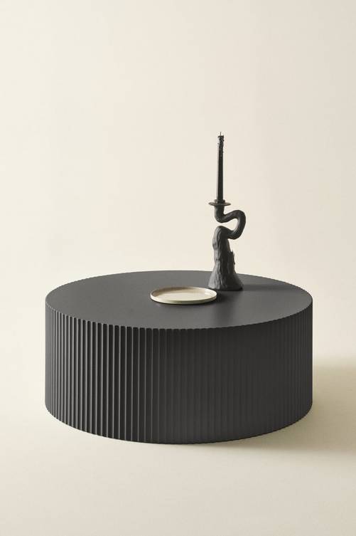 Runt soffbord av FSC-märkt MDF som lackerats med matt färg. Bordsskivan är slät medan sidan är räfflad runt om hela bordet. Produkten är certifierad med FSC vilket innebär att den består av trä som är avverkat från ett ansvarsfullt skogsbruk som tar hänsyn till människor och miljö. Material: MDF. Storlek: Höjd 35 cm, bordsskiva ø 35 cm. Maxvikt: 100 kg. Skötselråd: Torkas av med lätt fuktad trasa. Tips/råd: Detta bordet finns även som sidobord och de är snygga att kombinera tillsammans.