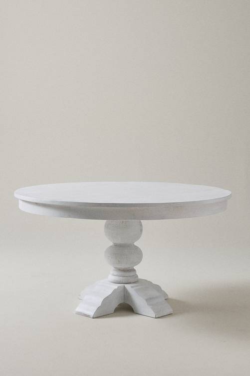 Runt matbord av massivt mangoträ. Ett handgjort, vackert matbord med rustik charm och mjukt formspråk. MADURAI är ett klassiskt pelarbord med kraftigt, snidat träben i mitten. Den runda formen bjuder naturligt in till samtal. Viss avvikelse kan förekomma eftersom möbeln är handgjord. Viss montering krävs. Monteringsanvisning medföljer. Material: Trä. Storlek: Höjd 75 cm, ø 140 cm. Höjd upp till bordskant: 66 cm. Beskrivning: Viss montering krävs. Skötselråd: Torkas av med lätt fuktad trasa. Tips/råd: Fyll hemmet med vänner och duka med porslin från Jotex som kommer till sin rätt på det rustika bordet.