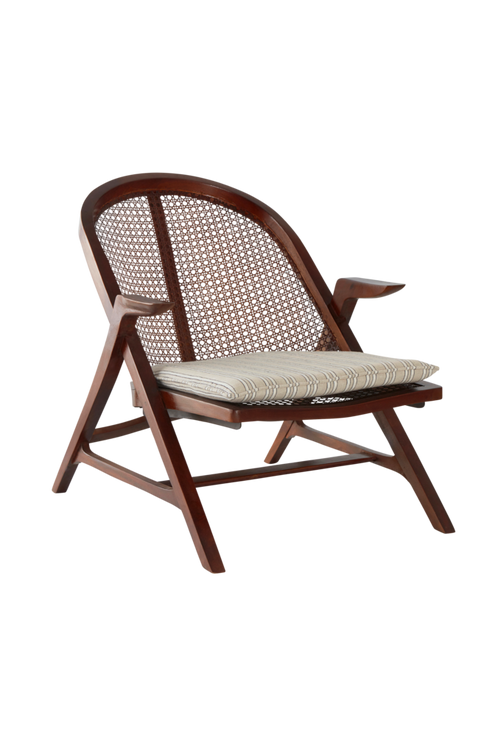 MAHAL är en låg fåtölj med bekvämt sittdjup. Designen är sofistikerad och har inspirerats av 1700-talets England då mörka träslag var populärt. MAHAL har både sits och ryggstöd i matchande rotting med mahognyfärgad trästomme. Sittkudden är mjukstoppad och har randig linneklädsel. Design: Jotex Design Studio. Material: Mangoträ, rotting, lin och polyester. Storlek: Höjd 78 cm, bredd 70 cm, djup 80 cm, sitthöjd 42 cm. Skötselråd: Torkas av med lätt fuktad trasa. Tips & råd: Mjuka prydnadskuddar gör sig snyggt i fåtöljen och är dessutom sköna att luta sig mot.
