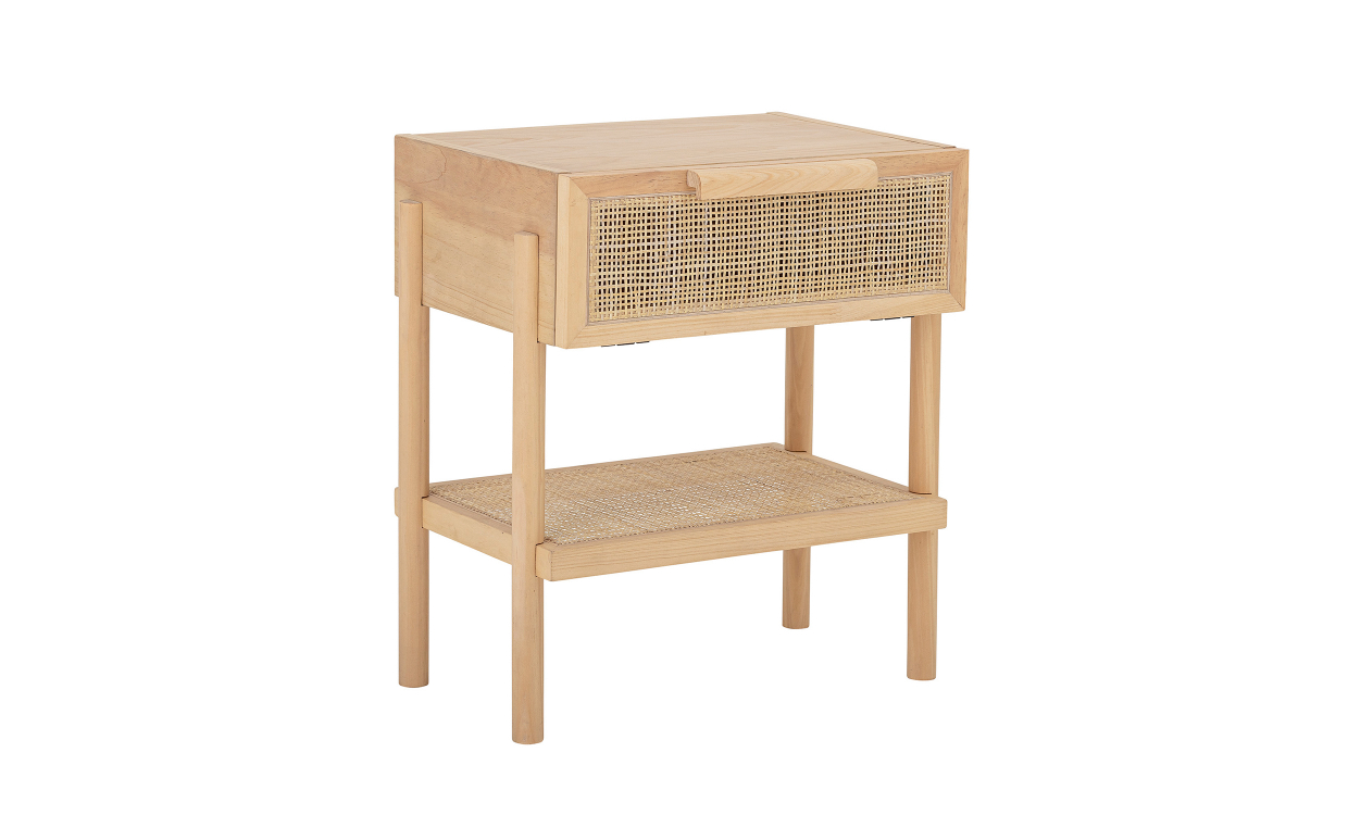 Manon är en möbel som både är funktionell och otroligt vacker. Sidobordet har en praktisk låda och hylla som dekoreras av rotting medan resterande bord är av tall, fanerad tall och MDF. Design & komfortSkandinaviskt sidobord i stilren design.Tillverkad i rotting, MDF, tall och fanerad tall.Rengör med en fuktig trasa.Hyllans storlek: 45x31x3 cm.Maxvikt bordsyta: 10 kg.Maxvikt hylla: 8 kg.Leverans & förpackningLevereras omonterad.Antal förpackningar: 1 st