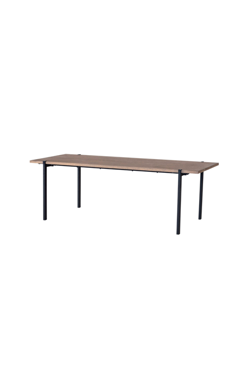 Matbord i gråbetsad ek. Längd 220 cm. Bredd 108 cm. Höjd 75 cm. Vikt 64 kg. Går att förlänga med 2 st insticksklaffar.