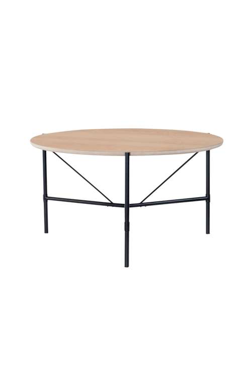 Runt matbord Ø 135 i vitoljad ek och svart metallundrerede. Längd 135 cm. bredd 135 cm. höjd 75 cm. Vikt 51 kg