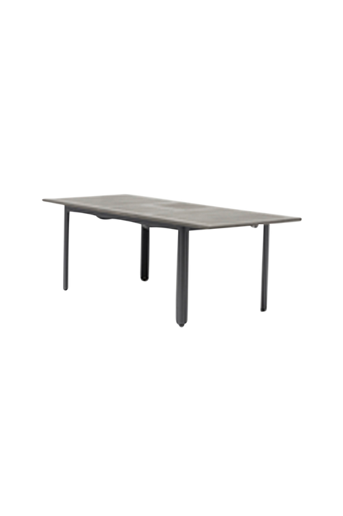 Bord i svart aluminium och bordsskiva mörkgrå gaumo. Butterfly iläggsskiva.