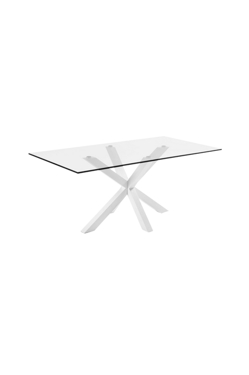 Matbord med ben av exposimålat stål och bordsskiva av härdat glas. Bredd: 200 cm. Djup: 100 cm. Höjd: 75 cm.
