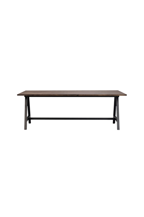 Carradale matbord med tvådelad massiv bordsskiva i ek och A-ben i svart pulverlackad metall. Bordsskivan kan kompletteras med 1 eller 2 tilläggsskivor à 50 cm vilket kan göra bordet upp till 320 cm långt, ingår ej.