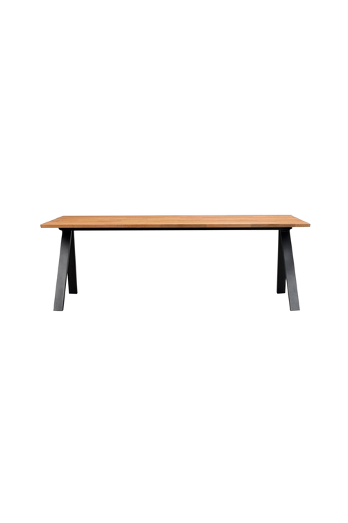 Carradale matbord med tvådelad massiv bordsskiva i ek och V-ben i svart pulverlackad metall. Bordsskivan kan kompletteras med 1 eller 2 tilläggsskivor à 50 cm vilket kan göra bordet upp till 320 cm långt, ingår ej. FSC-certifierad produkt, vilket innebär att den innehåller trä som är avverkat från ett ansvarsfullt skogsbruk som tar hänsyn till människor och miljö.