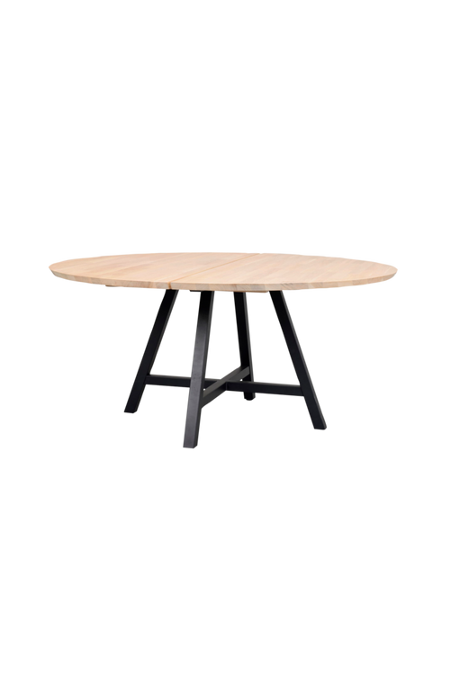 Carradale matbord med tvådelad massiv bordsskiva i ask och A-ben i svart pulverlackad metall. Matbordet ingår i den flexibla