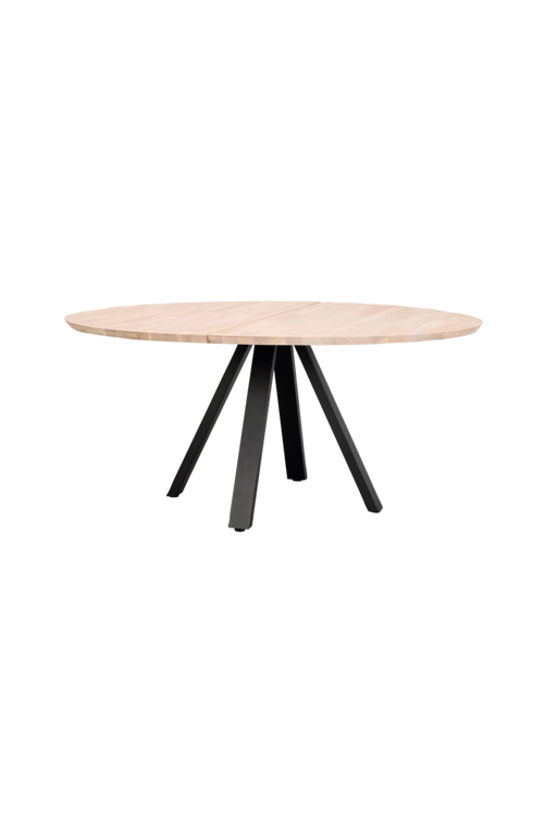 Carradale matbord med tvådelad massiv bordsskiva i ek och V-ben i svart pulverlackad metall.