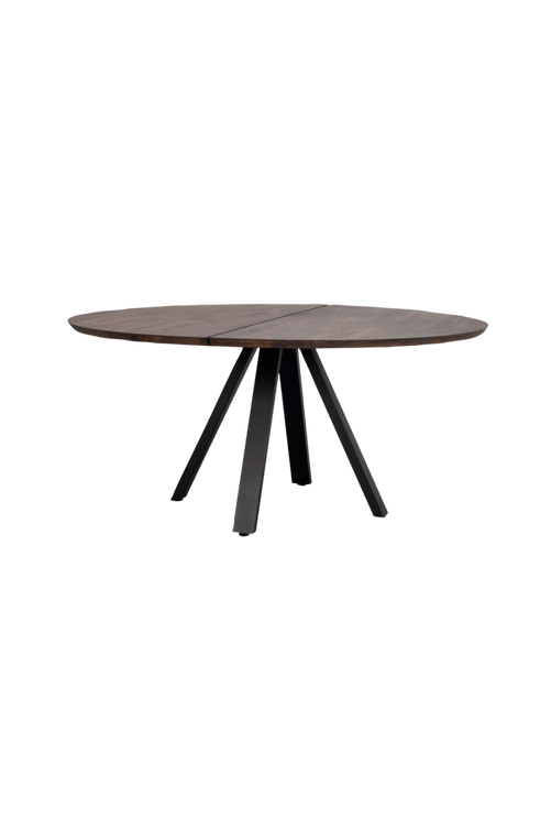 Carradale matbord med tvådelad massiv bordsskiva i ek och V-ben i svart pulverlackad metall.