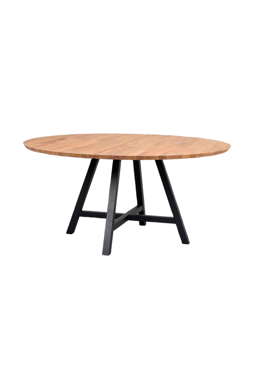 Carradale matbord med tvådelad massiv bordsskiva i massiv ek och A-ben i svart pulverlackad metall. FSC-certifierad produkt, vilket innebär att den innehåller trä som är avverkat från ett ansvarsfullt skogsbruk som tar hänsyn till människor och miljö.
