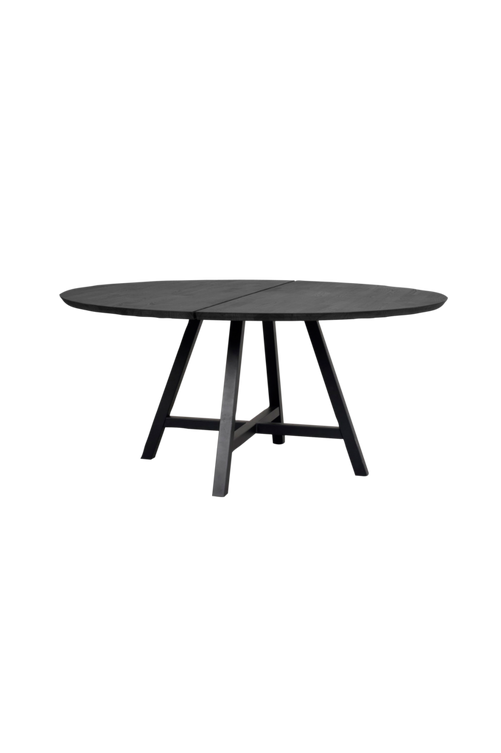 Carradale matbord med tvådelad massiv bordsskiva i ask och A-ben i svart pulverlackad metall. Matbordet ingår i den flexibla