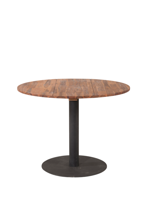 Charlie matbord med en rund topp i acacia och bordsben i stål. Bordets mått: Diameter: 100cm, Höjd: 74cm. Bordet kräver enklare montering.