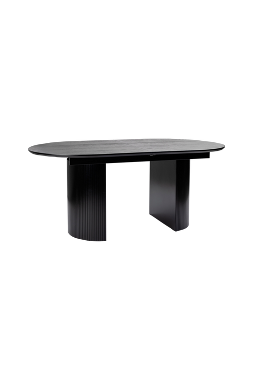 Matbord med tilläggsskiva som praktiskt förvaras i bordet när den ej används (ingår). Topp av fanerad lackad ask på mdf. Klädd bas med lackat hevea trä. Levereas omonterat.