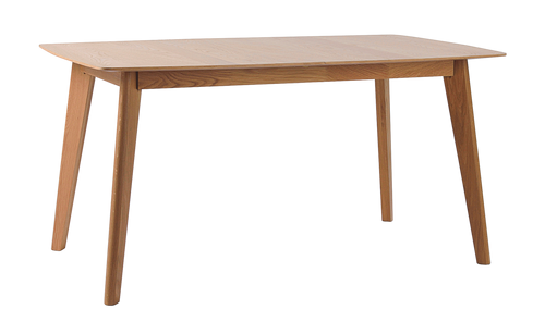 Stilrent och tidlöst matbord i skandinavisk design. Fanerad bordsskiva och formsvarvade ben i lackad ek. Matbordet har en dold iläggsskiva under bordsskivan. Längd 150 cm, bredd 90 cm, höjd 75 cm och Maxlängd 195 cm. Montera själv.