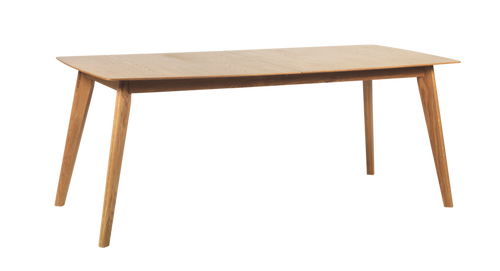 Stilrent och tidlöst matbord i skandinavisk design. Fanerad bordsskiva och formsvarvade ben i lackad ek. Matbordet har en dold iläggsskiva under bordsskivan. Längd 190 cm, bredd 90 cm, höjd 75 cm och Maxlängd 235 cm. Montera själv.
