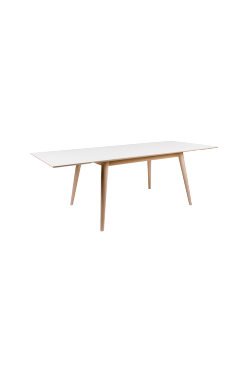 Ett modernt matbord med nordisk inslag. Borden är inkl. förlängningsskivor (2st) Material: MDF och tall med en skiva i HPL melamin