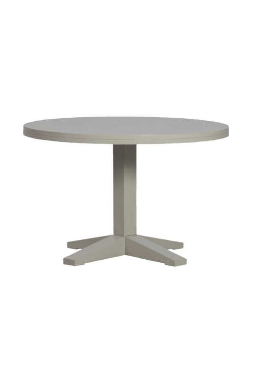 – Robust matbord med rund bordsskiva – Tillverkat av mangoträ med en finish som liknar lera – Plats för 4-5 personer – H 78 cm x Ø 120 cm Robust, stabilt och stort. Detta robusta matbord, ur en kollektion från det nederländska märket vtwonen, höjer stämningen vid matgruppen. Det runda matbordet Deck ser massivt ut och den ljusgrå färgen ger ett tidlöst uttryck. Den diskreta färgen passar utmärkt med olika tyger och färger, så det finns många kombinationsmöjligheter med matsalsstolar! Material Deck runda matbord är tillverkat av mangoträ med en grå finish som liknar lera. Mangoträ är känt för hållbar framställning och hög hållbarhet. Mangoträ kännetecknas också av tydligt synlig ådring och färgskiftningar. Ådringen, mörka linjer och kvistar gör varje produkt av mangoträ unik. Mangoträ är mycket tåligt och ett av de hårdare träslagen och därför skadas det inte lätt. Mått Matbordet har en höjd på 78 cm och bordsskivan är 5,5 cm tjock. Bordsskivan har en diameter på 120 cm. Det robusta benet är 72,5 cm högt och 10×10 cm tjockt. Nedtill är benet är 13 cm högt vid stommen och 4 cm högt i kanterna. Skötsel Möbler av mangoträ är lättskötta. Du håller dem enkelt damm- och fläckfria med en lätt fuktig, ren trasa. Möbler av mangoträ ska endast användas inomhus. En extra behandling eller skydd med transparent beläggning är möjlig, men anses inte nödvändigt under de första åren. Fråga gärna i färghandeln för att få råd och information om behandling av mangoträ. Leverans Deck runda matbord levereras i två paket. Bordet är enkelt att montera med hjälp av medföljande monteringsanvisning. Sätt möbeltassar av filt under benen för att skydda hårda golv.