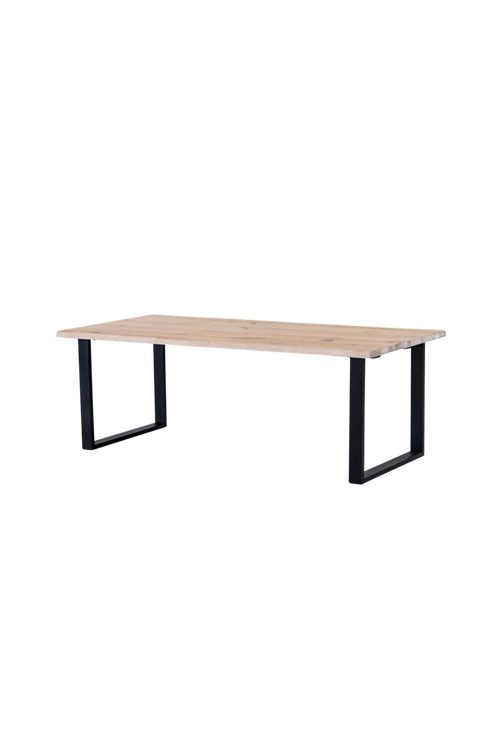 Matbord i vitoljad vildek med U-ben i metall. Längd 210 cm. Bredd 95 cm. Höjd 75 cm. Vikt 77 kg. Går att förlänga med 2 st instickklaffar.