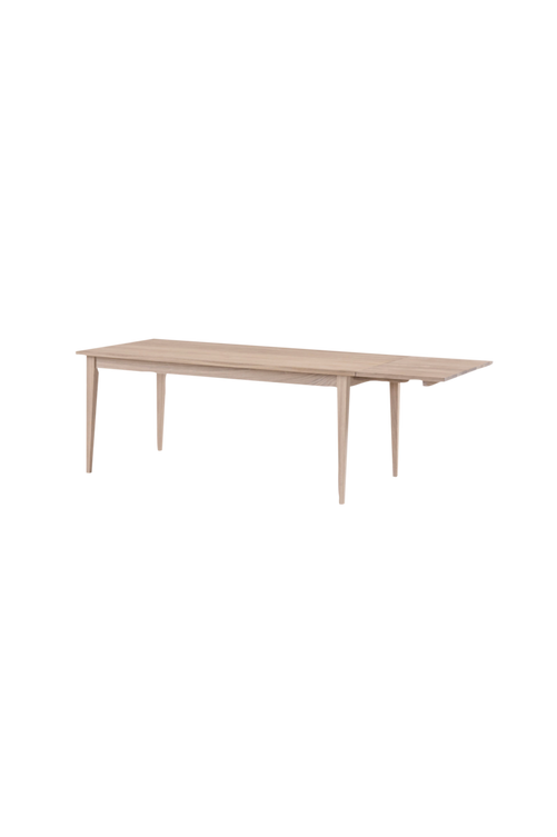 Matbord i vitoljad ek 180×95 cm. Längd 180 cm. Bredd 95 cm. Höjd 75 cm. Vikt 43 kg. Går att förlänga med 2 st insticksklaffar.