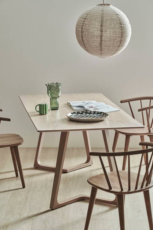 Köksbord i modern design med stomme i massiv ek och bordsskiva i MDF med ekfanér. Max viktbelastning 60 kg.