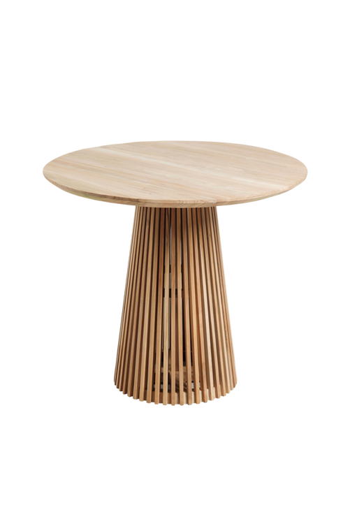 Bordet Jeanette passar perfekt både inomhus och utomhus under tak, och är gjort av massiv, hållbar, FLEGT-certifierad teak. Den patinerade ytan ger en unik stil som sticker ut i alla rum.